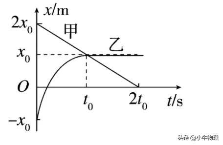 D.在0~2t₀时间内,甲、乙发生的位移不相同