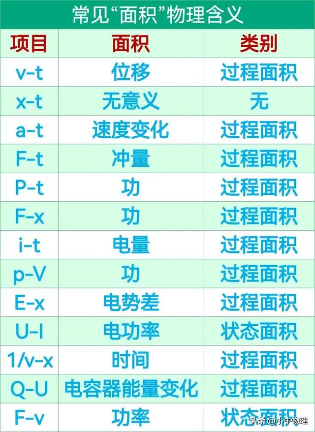 物理图像中“面积”要有意义的条件是△A=y△x,“面积”要具有可加性,过程面积具有积分性,状态面积不具有积分性。