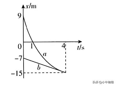 其中直线b与曲线a相切于点(4s,-15m).已知甲做匀变速直线运动,下列说法正确的是()