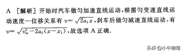 例题::汽车从静止开始做匀加速直线运动,然后刹车做匀减速直线运动,直到停止.下列速度v和位移x的关系图像中,能描述该过程的是()