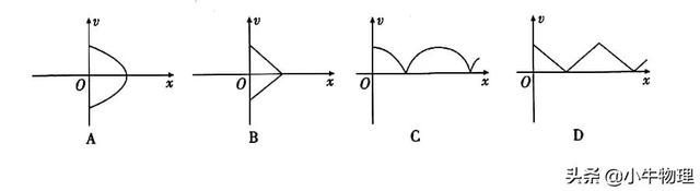 例题:小球从一定高度处由静止下落,与地面碰撞后回到原高度再次下落,重复上述运动。取小球的落地点为原点建立坐标系,竖直向上为正方向。下列速度v和位置x的关系图象中,能描述该过程的是(A)