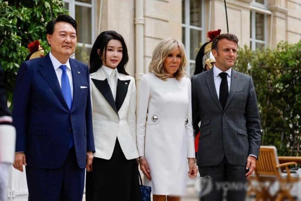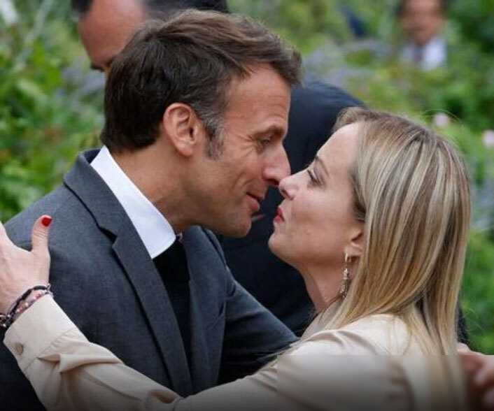 马克龙见意大利女总理,贴面礼有点甜,当着爱妻面儿对韩国第一夫