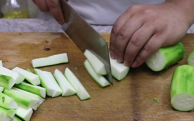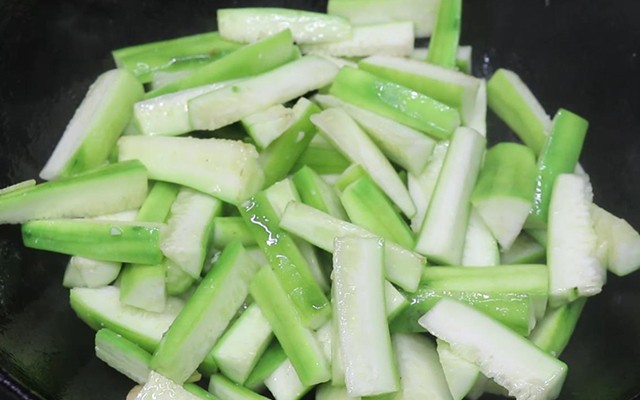 2.制作丝瓜汤,要想丝瓜不发黑,最关键的一点就是,不要把丝瓜直接倒入锅中,要先大火快炒一遍