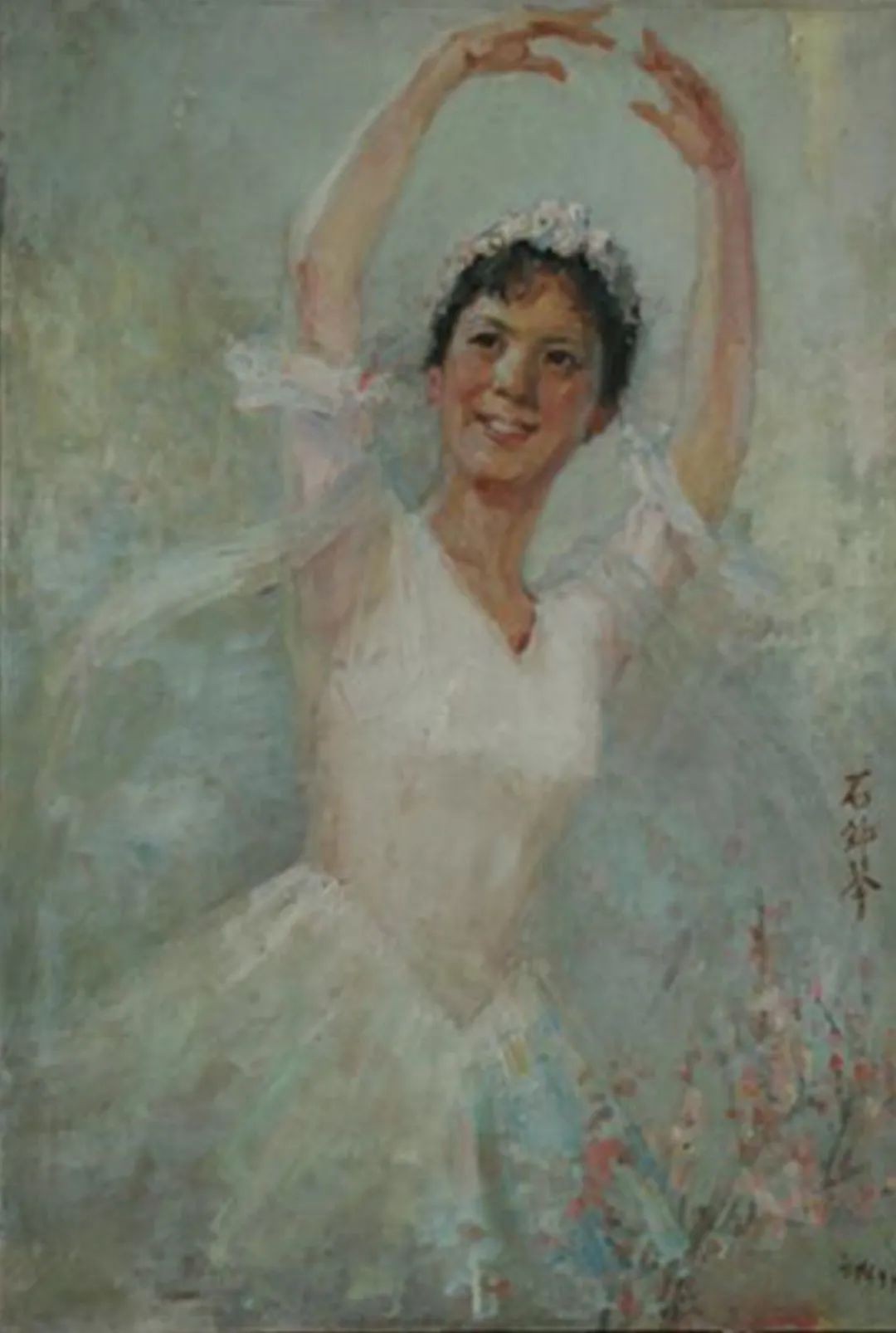 此作描绘的是国家一级舞蹈家石钟琴的肖像。石钟琴曾于1972年参演上海电影制片厂拍摄的芭蕾舞电影《白毛女》,饰演白毛女一角,自此,石钟琴的名字和白毛女一起被几亿中国观众牢牢记在心里。同年,成为中日建交进程中“芭蕾外交”的参与者。1978年,石钟琴被选为第五届全国人民代表大会常务委员会委员。