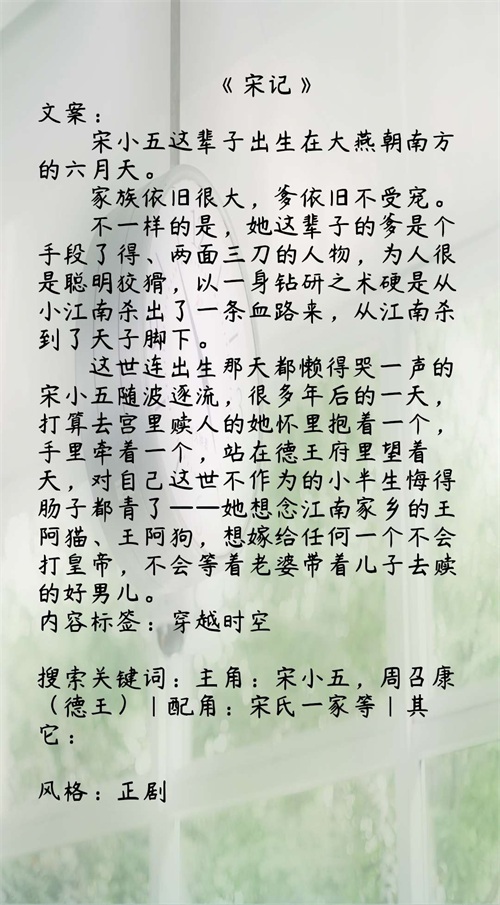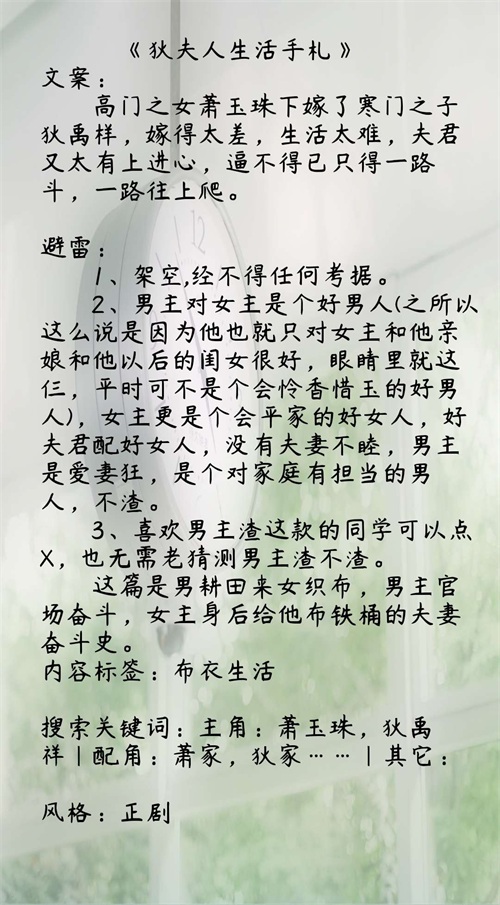 风格是正剧类型的,内容比较写实,没有其他穿越女主角的强大金手指,就是一普通女孩努力生活,积极向上过好一生的故事。