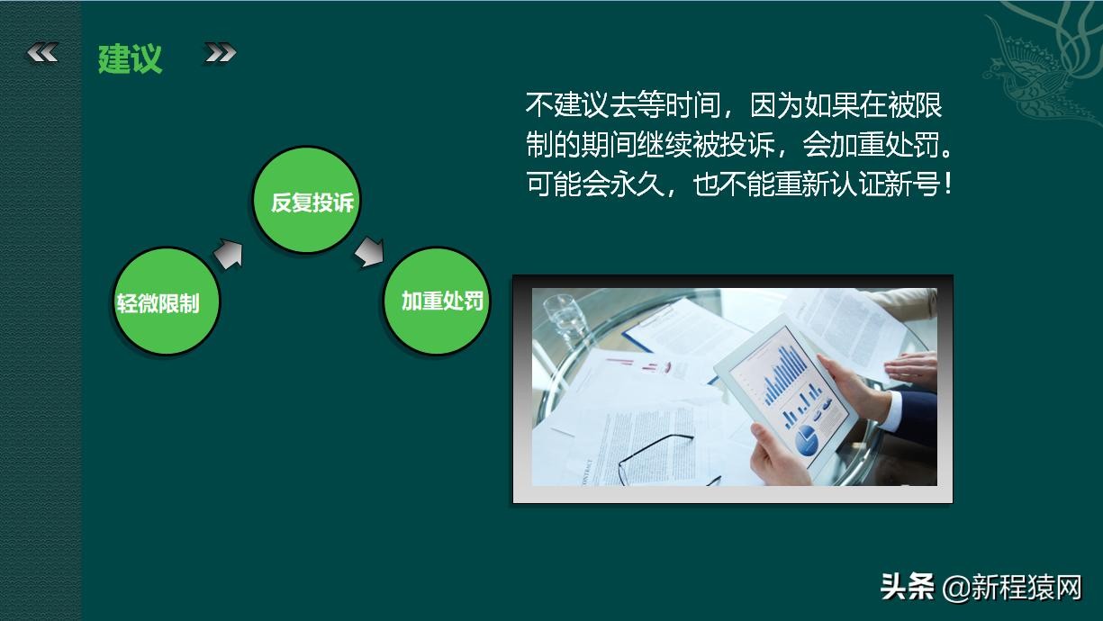 除了以上三种情况会自动恢复,其余的任何情况都不会自动解除,永远不会!同时,也不建议大家去慢慢等时间,原因是在你被限制的期间,如果有人继续投诉,系统会加重处罚。往往结果是永久限制,并且,你去新注册一个号也是不允许的,所以慢慢去等是得不偿失的。