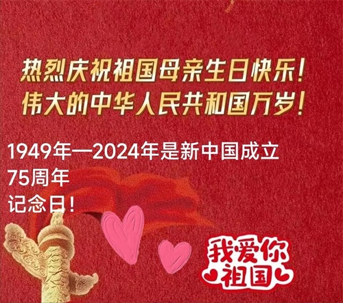 例句:今年是中华人民共和国成立75周岁“华诞”日。我们华夏大地举国同庆。为祖国庆生!
