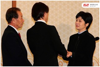 2009年3月11日,在韩国釜山,金贤姬与当年朝鲜绑架的日本人、自己的日语老师田口八重子的儿子和亲戚会面。