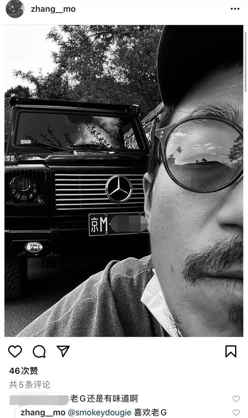 晒照还是次要的,张默主要是为了秀一秀身后的京牌爱车。这辆黑色的车是著名的某牌大G,市值200万左右,是我们普通人可望不可即的数字。它外形炫酷,深受李亚鹏等各位明星的喜爱。张默高调晒出爱车后,还在评论区表达对该车的喜爱。