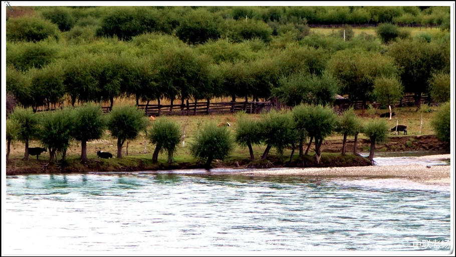 清澈的尼洋河水从洁净的砂石上缓缓的流过,不湍不急,闲散舒缓,沿途时而可以见到更细的小溪从山坡上投入它的怀抱,然后互相依偎着向前奔淌,奔向雅江,奔向大海。