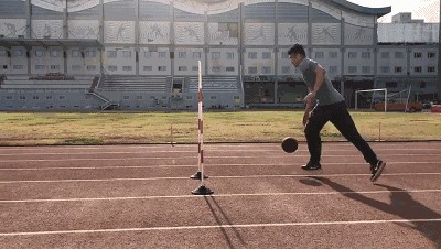 1.运球过程中,如果暂时失去对球的控制,但球未出测试场地,考生可自行捡回,在对球失去控制处继续运球,计时不停表。每人考两次,记录其中成绩最好的一次。