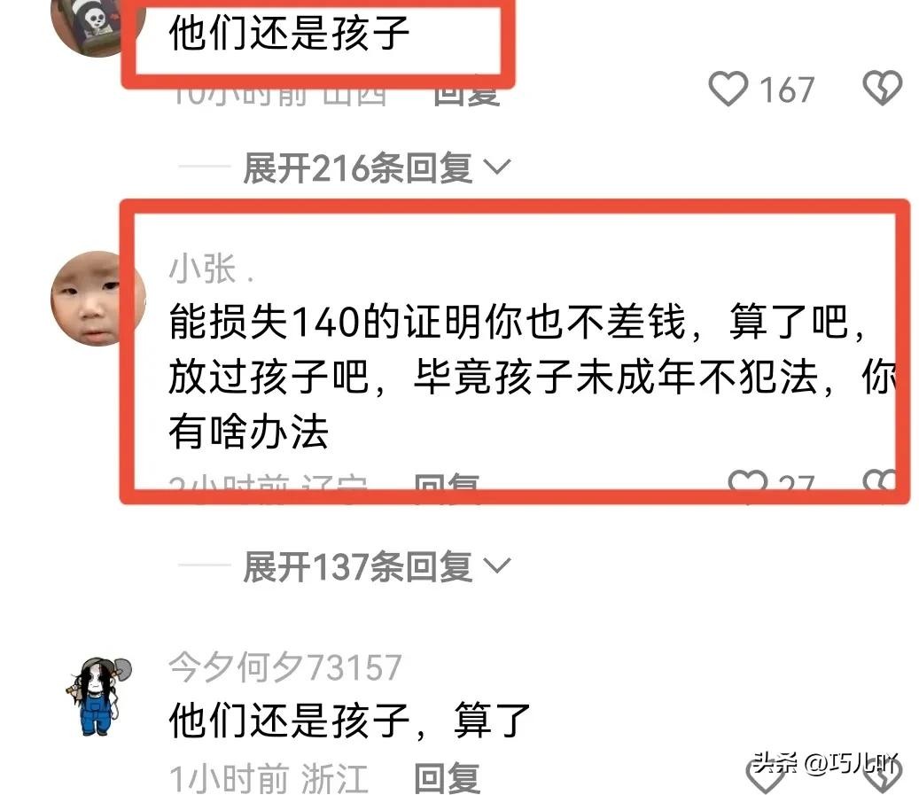 还有人说,报警自首那个孩子还算懂事儿,他就不用赔了吧。