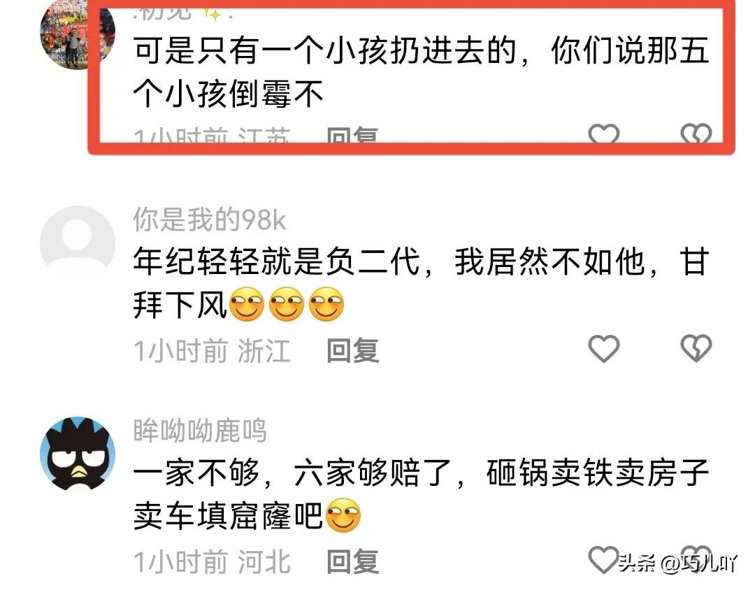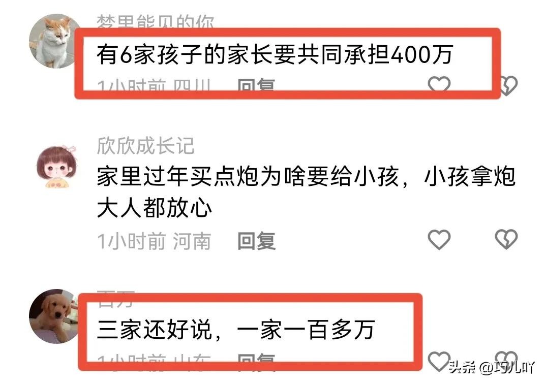 也有网友说,怎么可能不赔钱呢?6个孩子家长共同承担400万不过分吧。