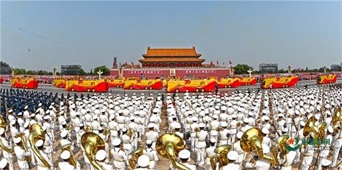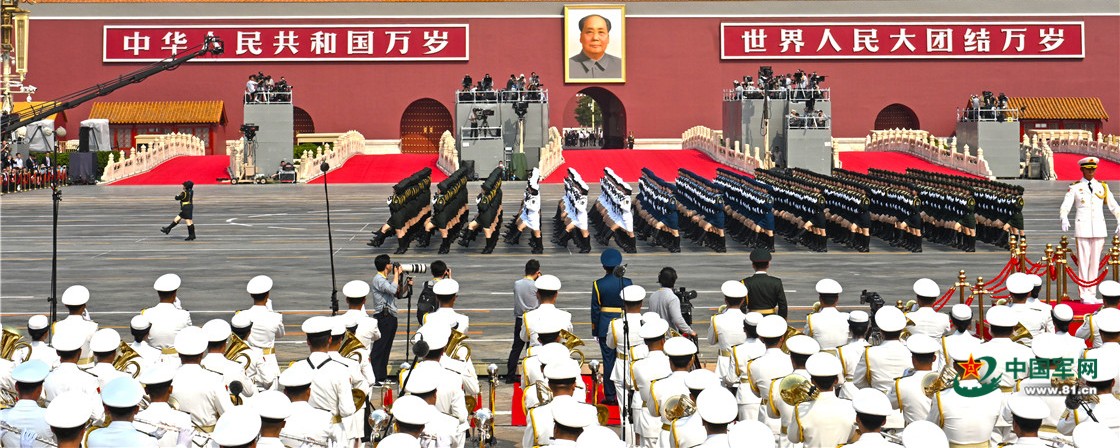 在雄壮的军乐声中,由15个徒步方队、32个装备方队、12个空中梯队组成的受阅部队,依次通过天安门,接受祖国和人民检阅。受阅官兵英姿勃发,受阅装备威武列阵,热烈的掌声和欢呼声此起彼伏。