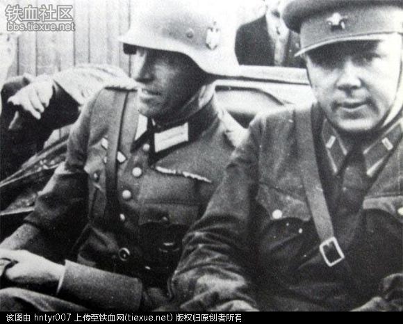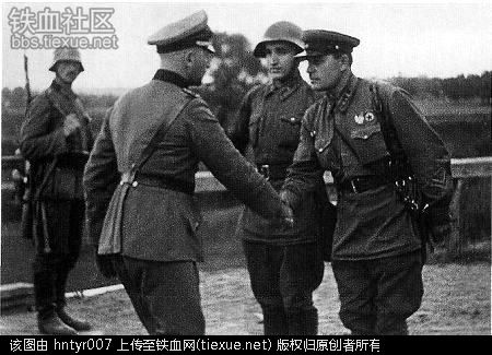 这个就是二战初期1939年苏军与德军夹击波兰成功后,苏、德两军会师时的真实历史镜头。