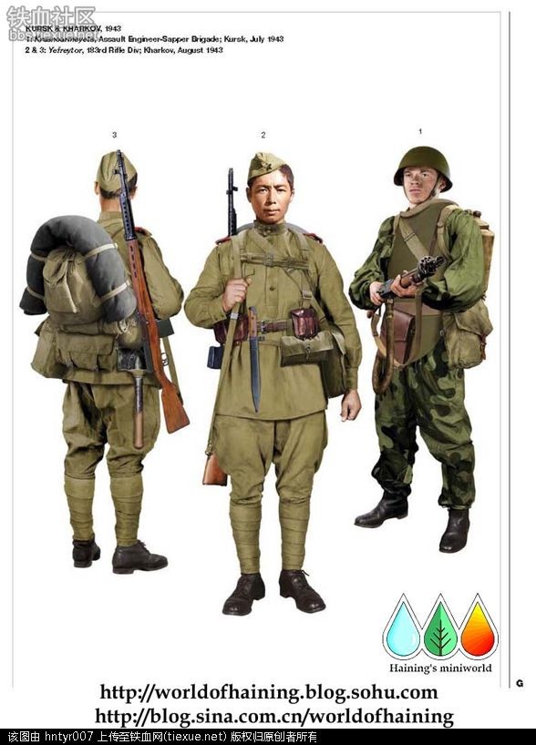 网上查了一下,刚好有一张1943年苏军士兵的图片,2号士兵就是位于乌克兰哈尔科夫苏军第183师的士兵,戴着的帽徽就是绿五星,刚好也是个酷似中国人的亚裔蒙古人种。