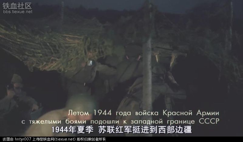 这个镜头说明时间已到1944年夏季,地点是苏联的西部边疆。熟悉情况的铁友都会知道,这个西部边疆其实就是乌克兰西部,与德国接壤。此时德国与苏联之间并没有波兰这个国家相隔了,因为二战初期苏军与德军夹击将波兰瓜分了,越过边境线就直接进入德国本土了。可见此次苏军侦察兵任务的重要性与艰巨性。