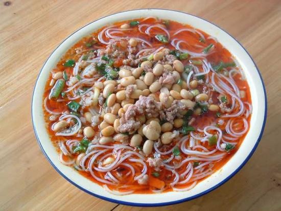 红油米粉历史悠久,距今已有两千多年的历史。红油米粉的绝妙之处在于它的红油,红油的味道,直接决定了这道美食是否口味正宗。用独特的工艺调制出别具一格的红油,不仅味道独特,颜色也十分的艳丽饱满,让人食欲大增。在米粉里加入黄豆、葱花、高汤、肉末等,营养丰富,滋味鲜美,让人念念不忘。