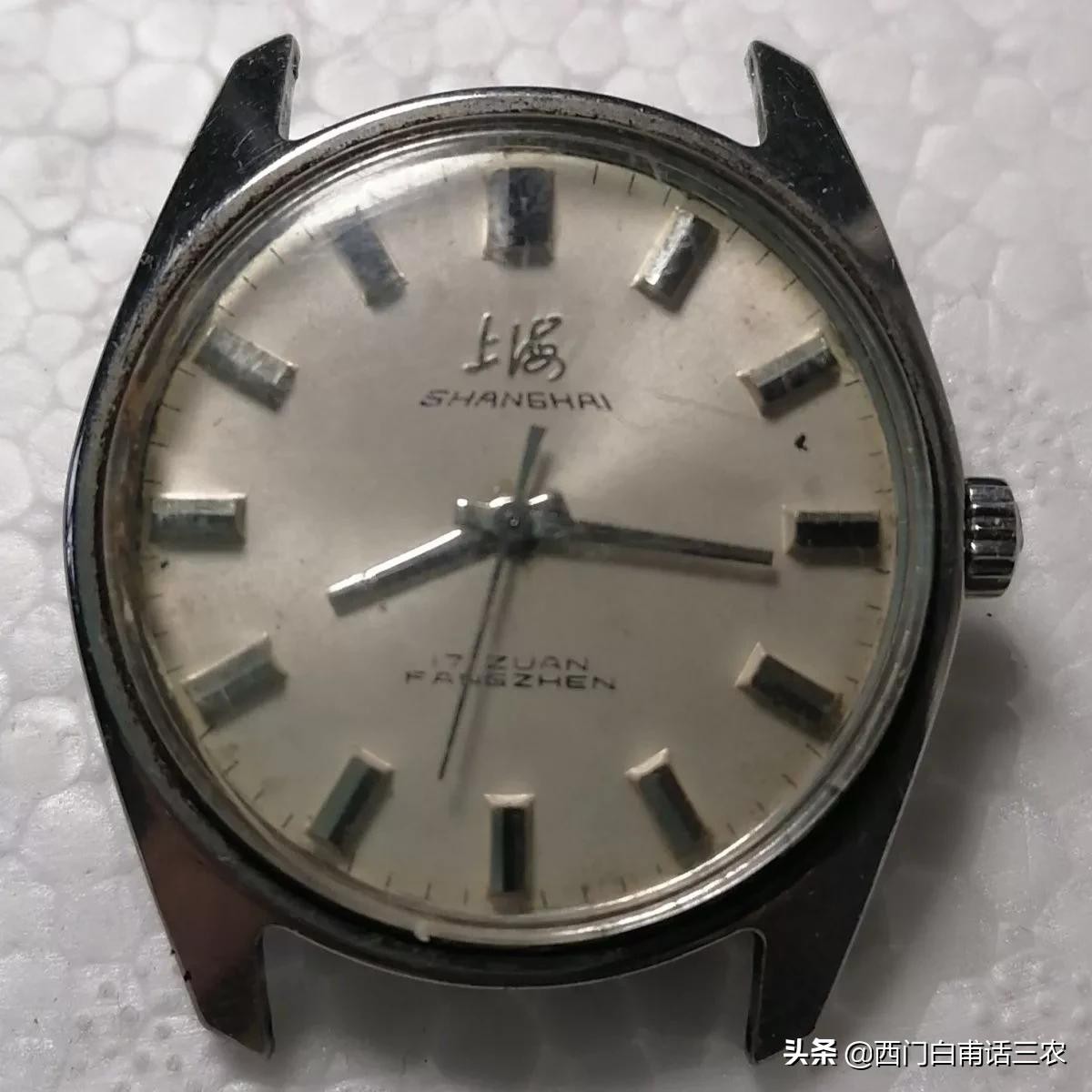 上海牌手表是七十年代比较时髦的生活用品,也是当时人身份和地位的象征,手腕上如果戴一块上海牌手表,走路也会昂首挺胸,如果穿的是长衫,也会把戴表的那个胳膊袖子挽起来,让手表露在外面,以便别人能看得见。如果戴着一块上海牌手表,在人多的地方,常常会不停地抬起手腕看时间,而且还会突然说:“哎呀,不好了,已经10点了,我还有急事,我先走了”,边说边看着手腕上的手表扬长而去。不过,他并没有什么急事,而是赶去另一个人多地方报时间去了。当时,我也买了一块上海牌手表,价格是100元。