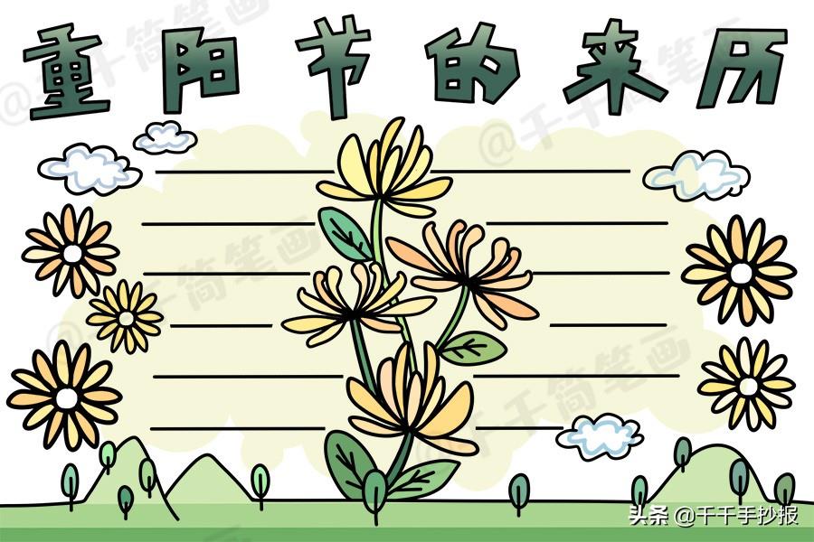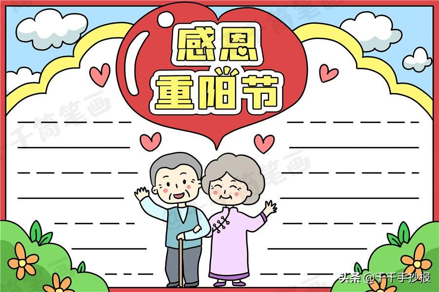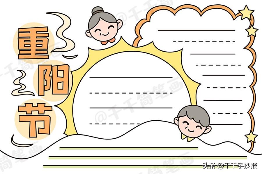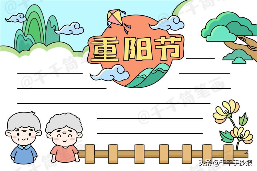 重阳节主题绘画,简单好看的尊老敬老手抄报,快给孩子收藏吧