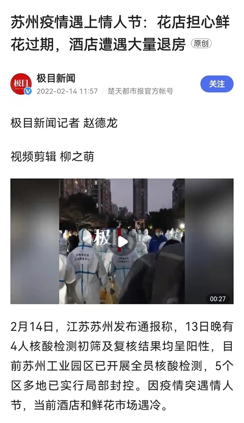 孩子们暂时不用上学彻底“嗨”了,家长们愁了,花店的老板们傻眼了,情侣们纷纷退房,酒店的老板也傻眼了......整个大苏州“沦陷”了......