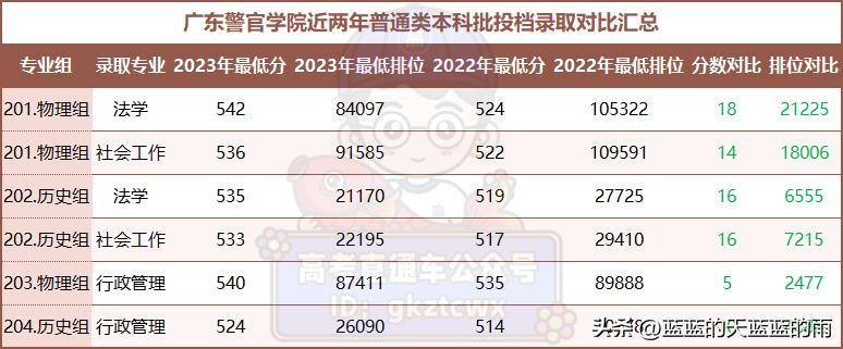 广东警官学院2022-2023年广东投档录取情况对比