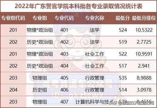 今天为大家整理了广东警官学院2023-2021年各专业录取分数线及位次。