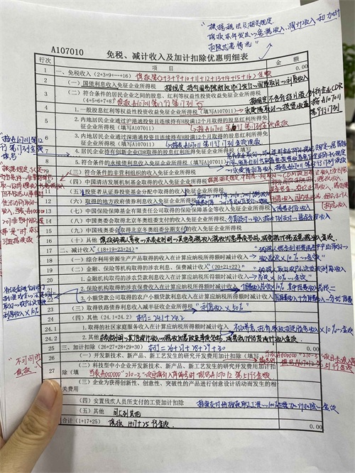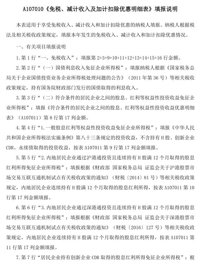 A107010《免税、减计收入及加计扣除优惠明细表》填报说明