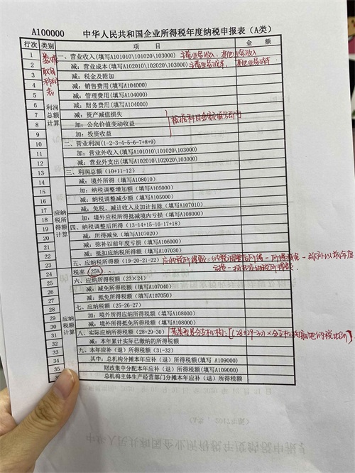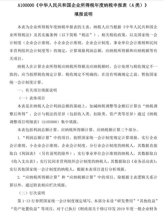 A10000中华人民共和国企业所得税年度纳税申报表(A类)填报说明