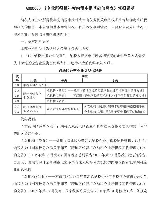 A00000企业所得税年度纳税申报基础信息表填写说明