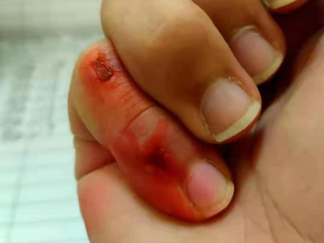 辅警李俭的手指被玻璃划伤
