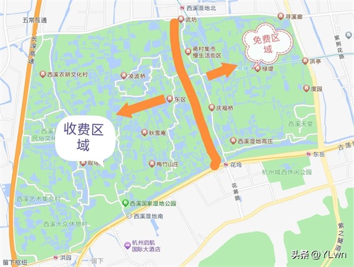 整体来说,福堤以东基本都是免费,基本包括福堤、绿堤、西溪天堂、西溪雕像园等。而福堤以西基本是收费区域(部分区域也是免费的)。