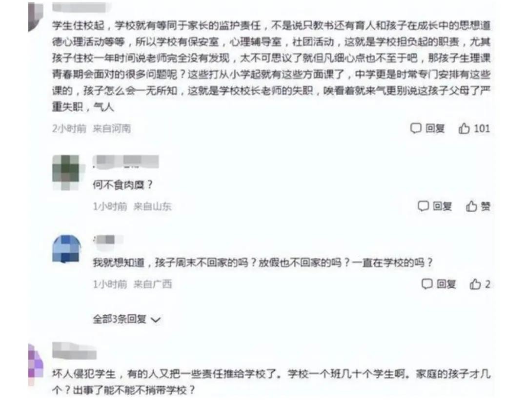 此事也引来了网友的一些议论,有网友称女孩住校老师竟然一点都没有发现,是学校的失职。