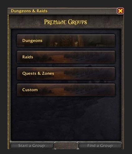 第三个增加团队查找器。将会在服务器一上线的时候就可以使用。我们来看一下60级曝光出来的团队查找器的界面,4个选项分别是5人本,团本,任务和自定义,同时暴雪强调了这个不是巫妖王版本的随机组队查找器,更像是正式服的集合石,同时还是需要自己组队,自己跑副本。这个将会大大降低新人上手的难度,就跟现在正式服一样,做任务打本都是利用这个团队查找器,很方便。