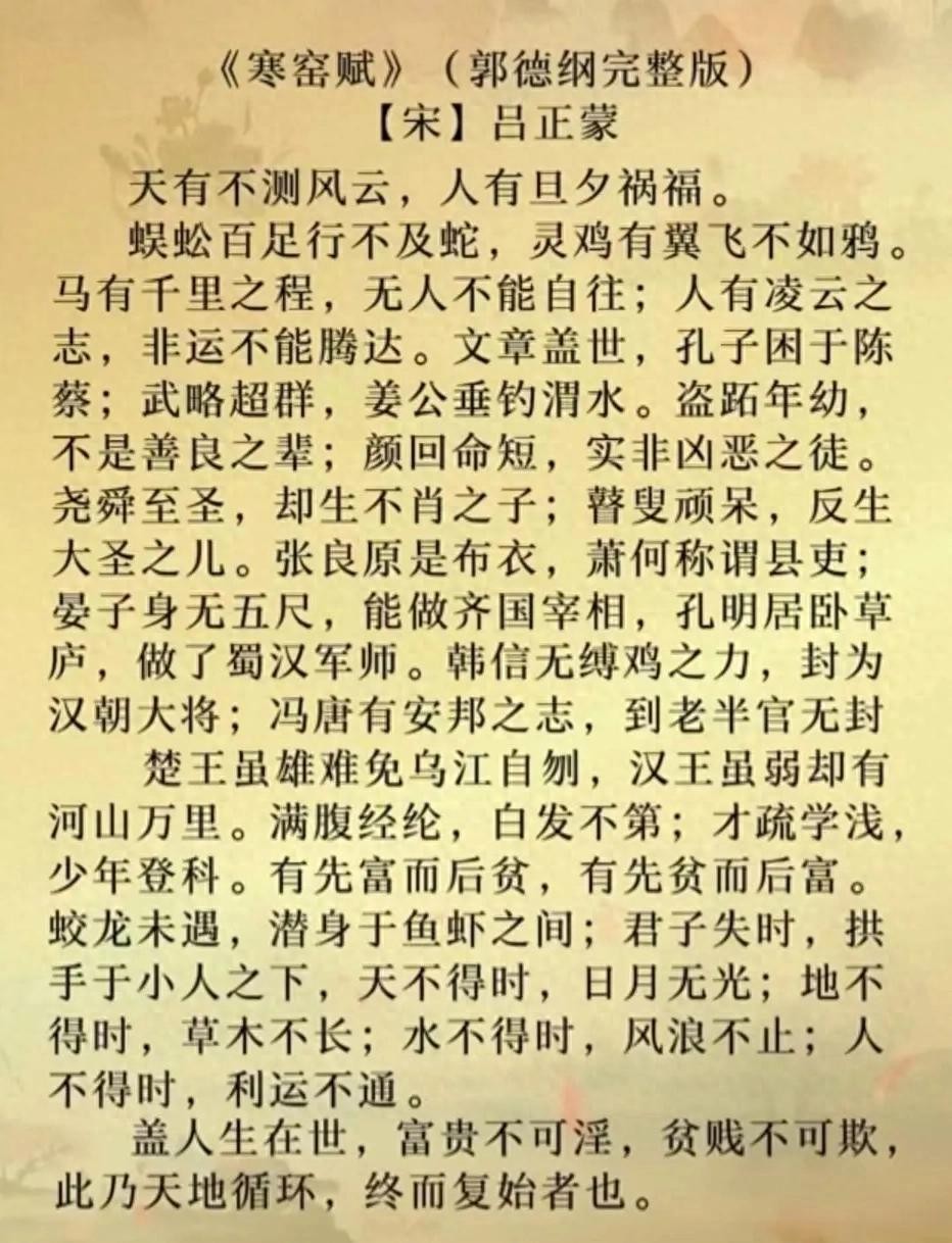 要说最激励自己的话,莫过于鸡汤鼻祖吕蒙正的这篇千古奇文《寒窑赋》了。