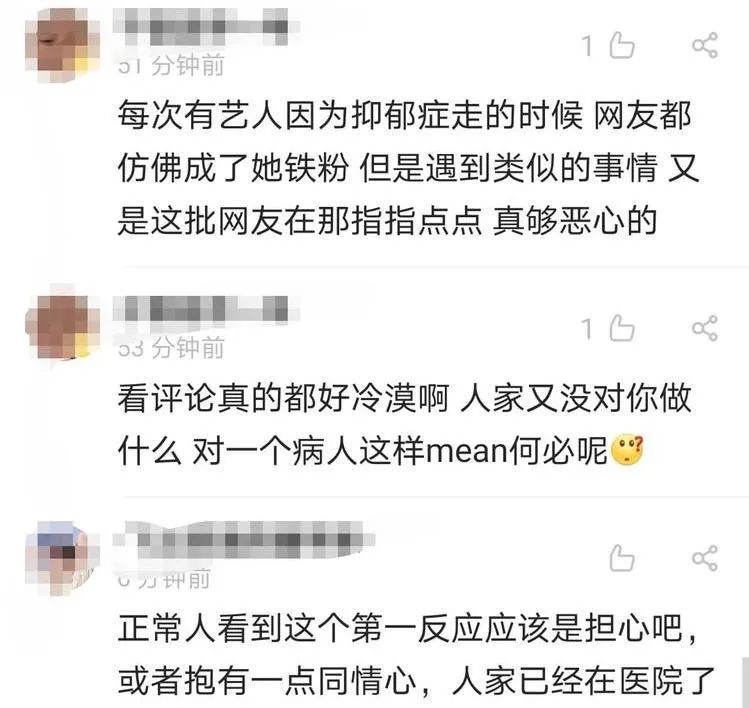 中国网友都被她的状态吓坏了,纷纷在评论区里留言表示那些恶语相向的人也太冷漠了,人家患有抑郁症本来就在治病了,只要是个人,第一反应都是担心或者同情吧。