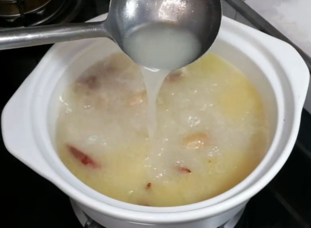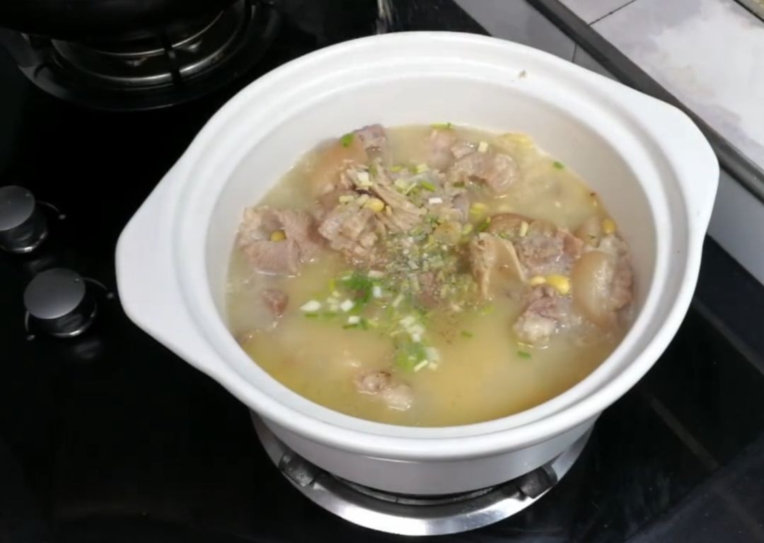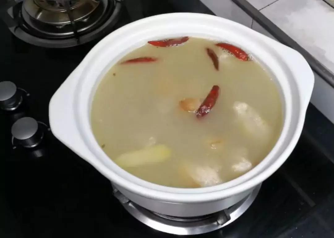 9.半个小时候打开盖子,可以看到汤熬得更加浓厚,味道更加香醇。