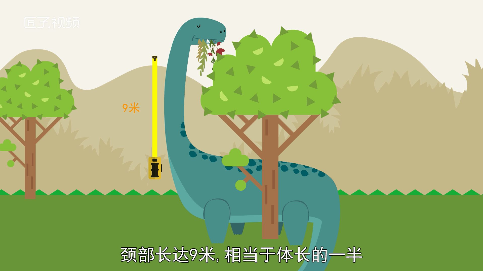马门溪龙,全长约22米,体躯高将近7米。它拥有世界上最长的脖子,颈部长达9米,相当于体长的一半,颈椎数亦是蜥脚类中最多的一种,有19个颈椎。马门溪龙行走时会把那又细又长的尾巴拖在身后,但到了交配的季节,雄马门溪龙在争雌的战斗中会用尾巴互相抽打。