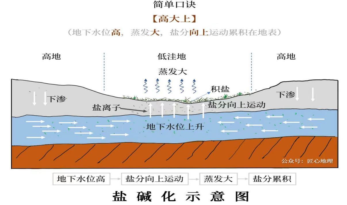 人为原因主要是由于不合理的灌溉导致的。例如,在浇水时采用大水漫灌的方式,或者在低洼地区只灌不排,导致地下水位迅速上升并积盐,从而使原来的好地变成了盐碱地。此外,常年过量使用农药和化肥也会在一定程度上加重土壤的盐渍化。