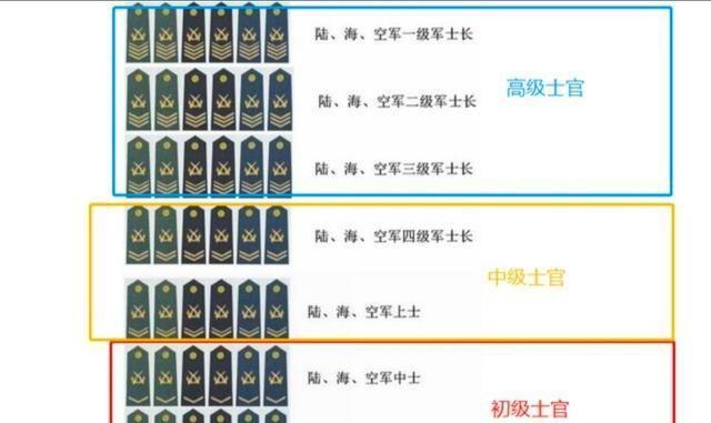 那么,我国士官制度分为三等七级,具体是这样分的,①初级士官包括:〈下士服役三年,中士服役三年〉,②中级士官包括:〈上士服役四年,四级军士长服役四年〉,③高级士官包括:〈三级军士长服役五年,二级军士长服役五年,一级军士长服役六年〉。