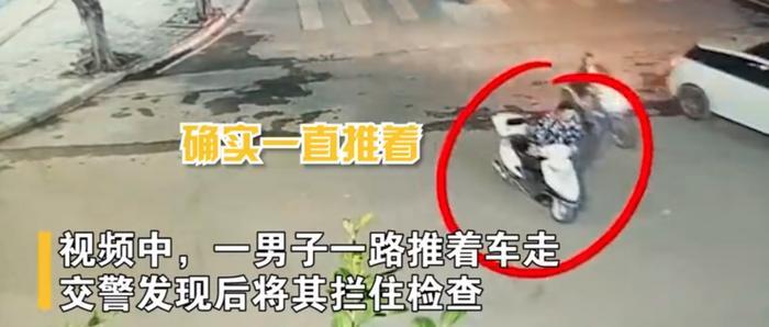 10月29日在贵州,一男子酒后一路推着摩托车回家遇到交警检查,面对交警自信的笑了!交警查监控后发现他确实是全程推着车走的!