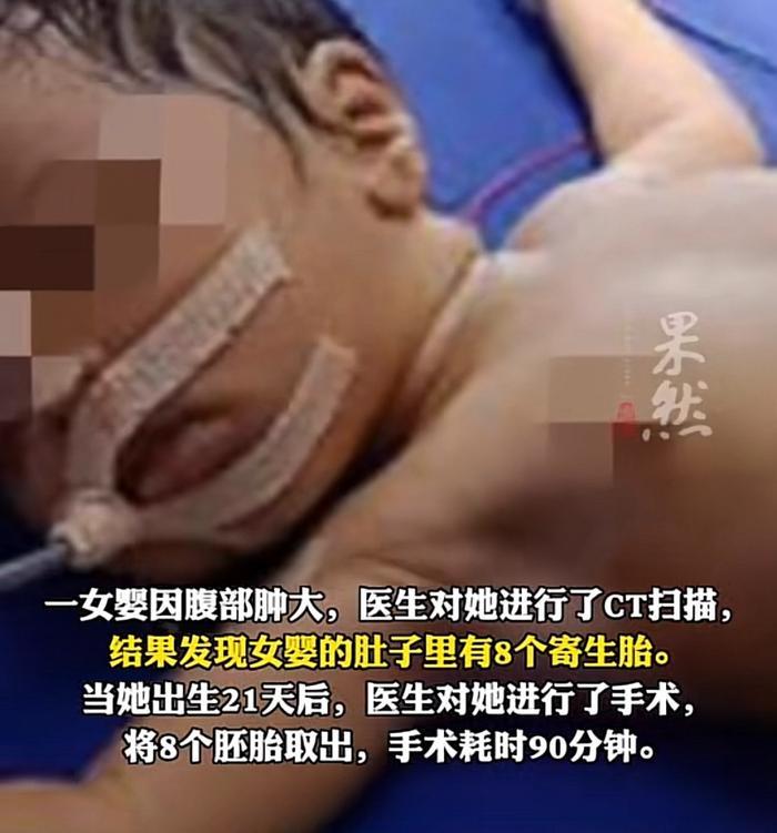 11月4日,据媒体报道,印度一刚出生21天的女婴体内,竟然有8个寄生胎,全球罕见,仅200例!