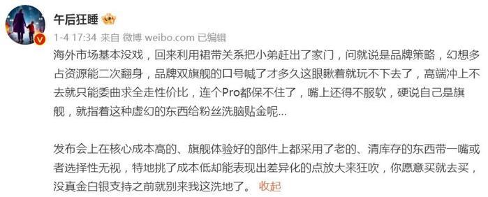 比如一加11这一次最大的舆情危机,在我看来反而不是屏幕和续航,恰恰是其产品经理对友商用户的嘲讽。