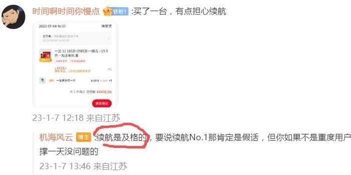 值得一提的是,疑似被一加11投放的大V@机海风云,在他的一加11评测视频中,对该机的续航表现避而不谈,在其粉丝的一再追问下,他才给出了“续航及格”的回复