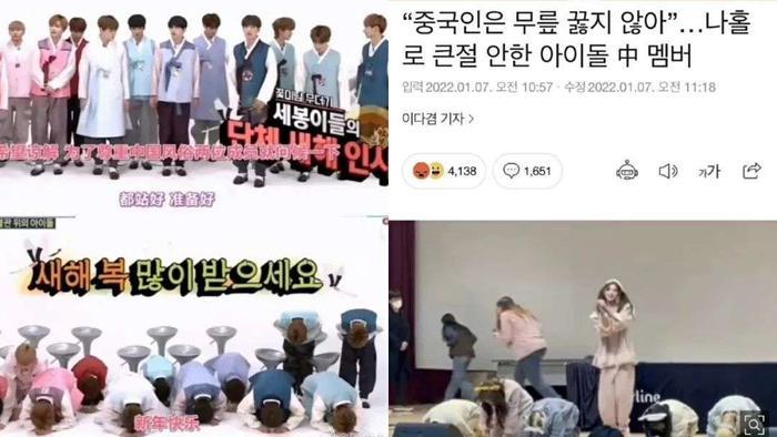 此外,来自于身份问题的文化冲突也在影响着绿卡爱豆们。比如SEVENTEEN的两位中国成员文俊辉、徐明浩,便因为节日未与其他成员一同遵照韩国文化行跪拜大礼,遭遇非议。同样的情况,也发生在王怡人身上,而她所属的乐华娱乐,更因为是中国公司被韩国网友联名抵制,旗下爱豆发展也备受影响。