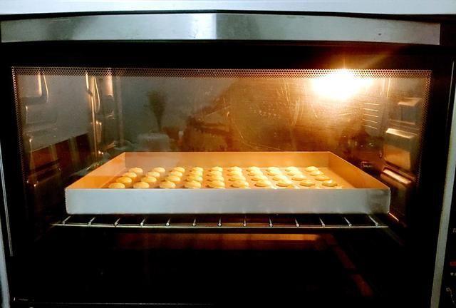 7、烤箱预热好了之后,将准备好的蛋黄饼干放入烤箱中,一般200度烤温烤制半个小时左右,就可以将饼干拿出来食用了。