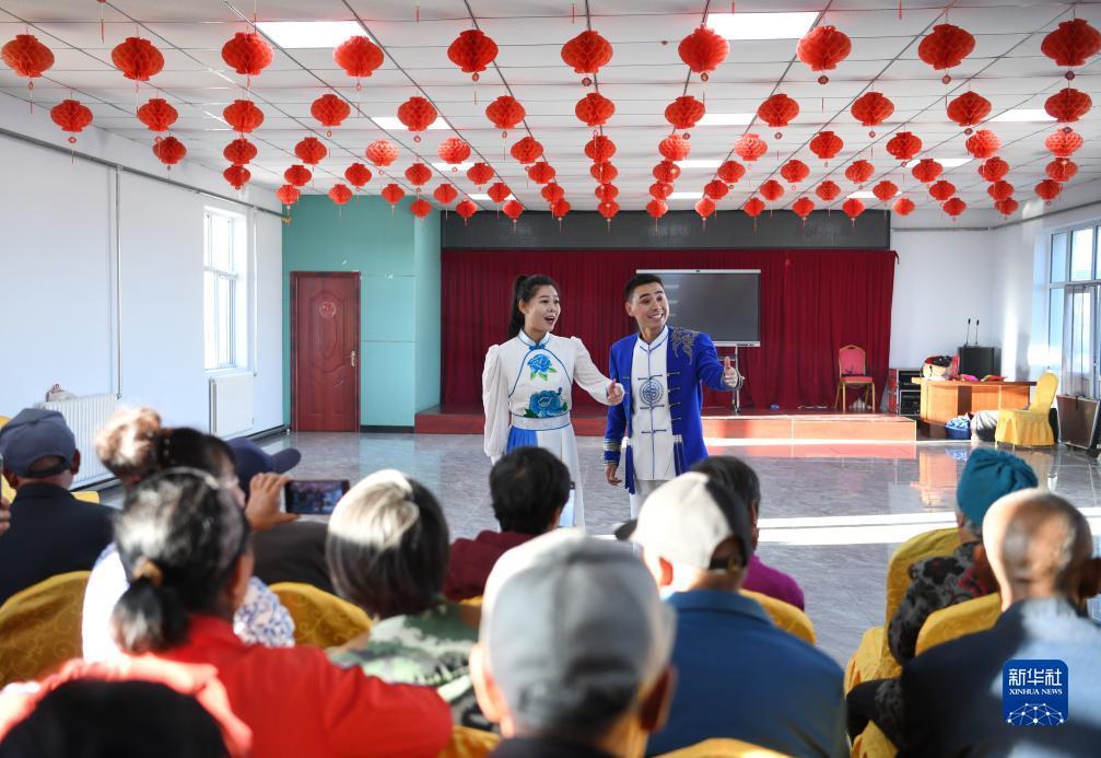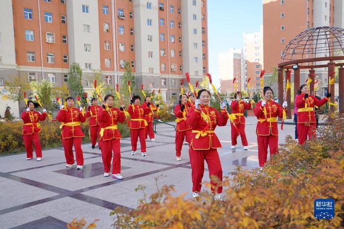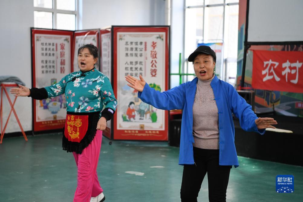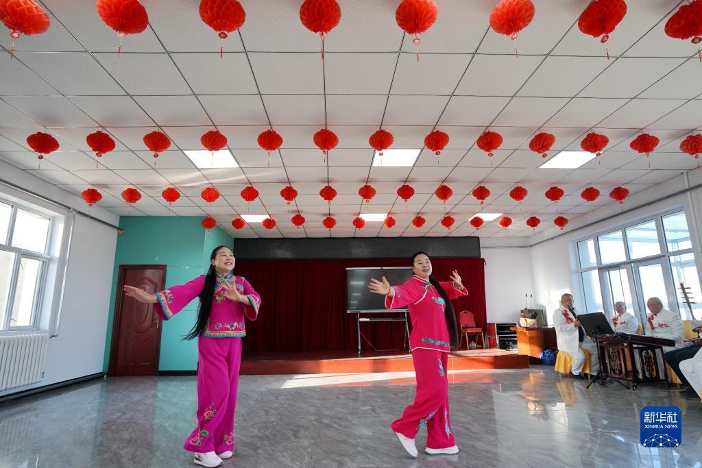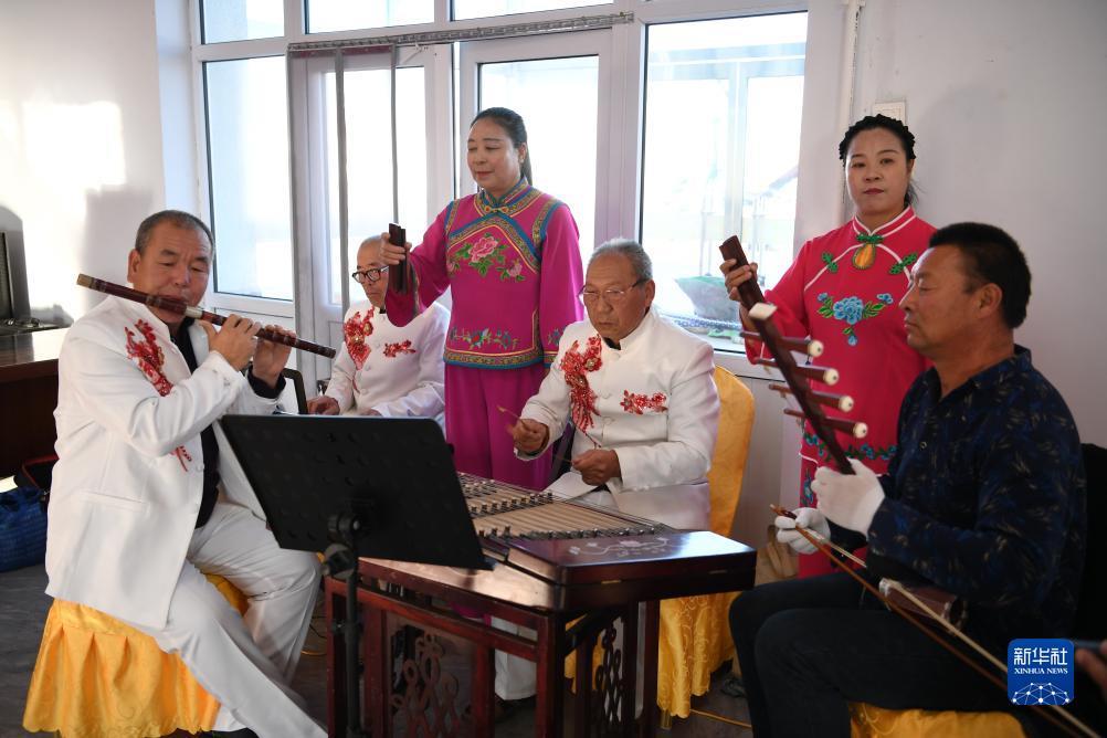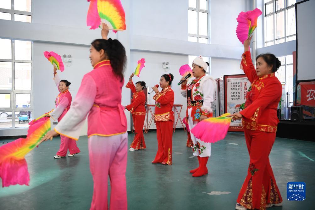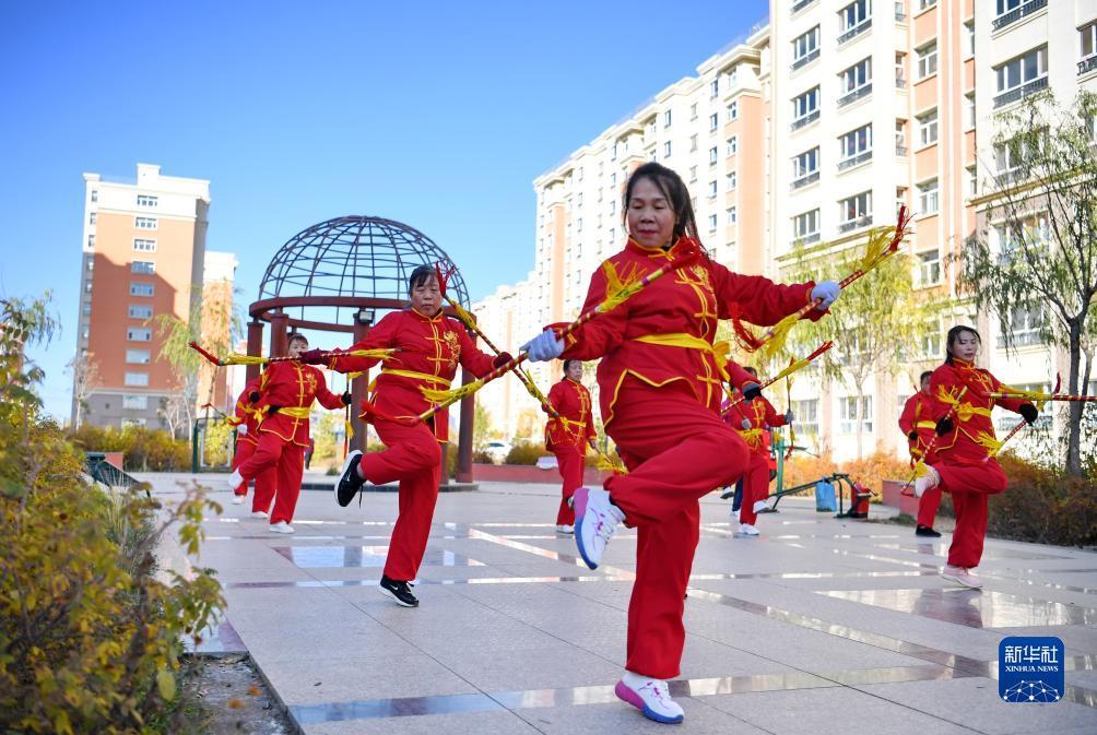 10月13日,河北省康保县怡安康城社区居民在练习康保二人台霸王鞭。康保二人台在河北省坝上地区的康保县、张北县等地广为流传,经过100多年的传承,已成为扎根塞外、为群众喜闻乐见的艺术形式,2006年被列为首批国家级非物质文化遗产,成为极具地域特色的文化品牌。近年来,河北省康保县在康保二人台剧目取材、表演形式、音乐伴奏、主题表现等方面大胆尝试,将康保二人台艺术与乡村文化振兴紧密结合,推动传统文化的传承。目前,康保县已有康保二人台专业剧团21个、民间剧团上百个、演出人员近3000人。新华社记者 牟宇 摄