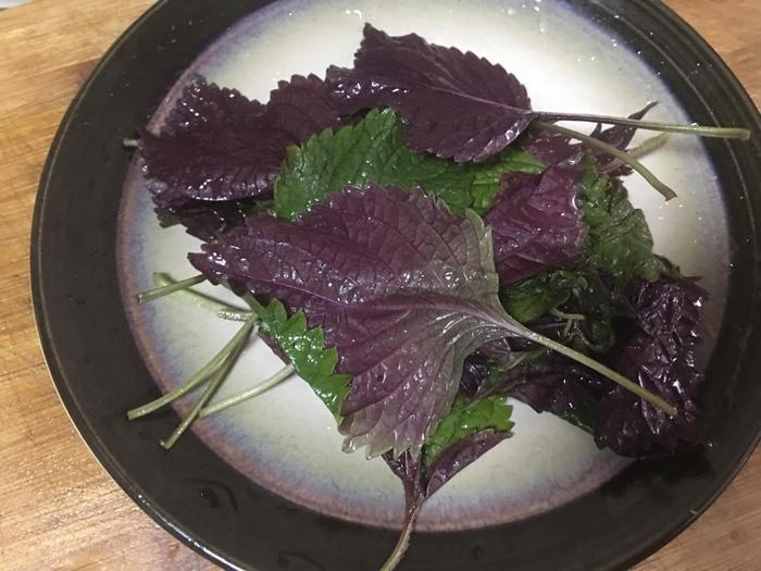 3、将紫苏叶摘下,清洗干净备用。