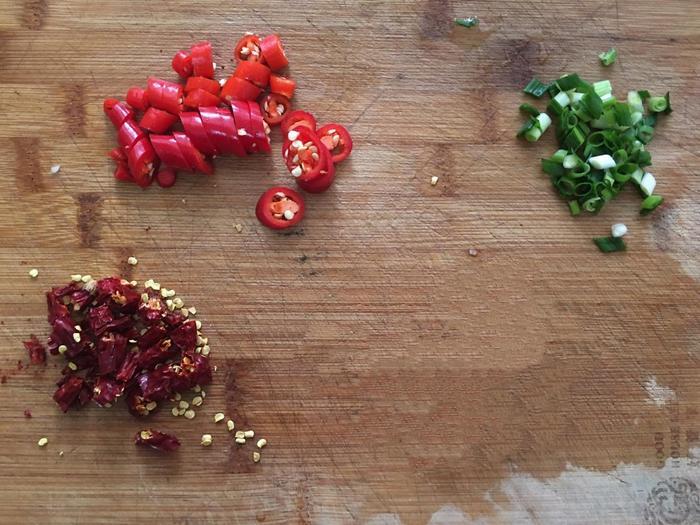 11、最后加入红辣椒和紫苏叶。