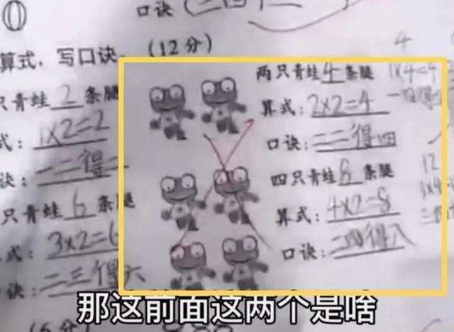 看到试卷上的大红叉,孩子的妈妈也无奈了,这道题目这么简单,女儿平时都很聪明,怎么还做错了?妈妈秉着耐心教育的原则,引导女儿找到正确答案:“来,宝贝,你告诉妈妈,一只青蛙有多少条腿?”